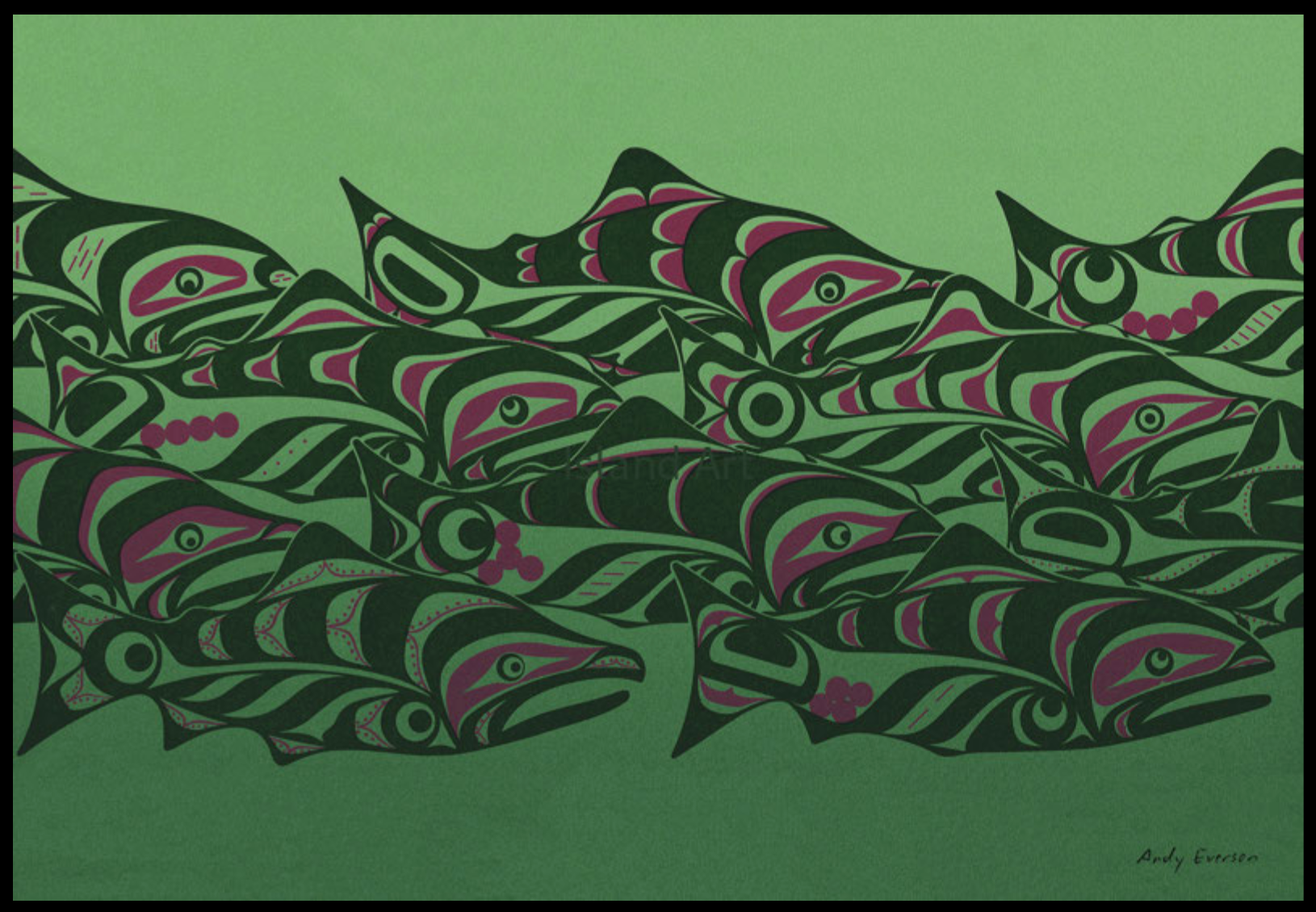These art cards by Andy Everson add a special touch to any occasion. Each card is individually wrapped, with a unique design and description of the design on the back of the card. Each card comes with an envelope and is blank on inside. Perfect for framing, card collecting, or sending a meaningful message.