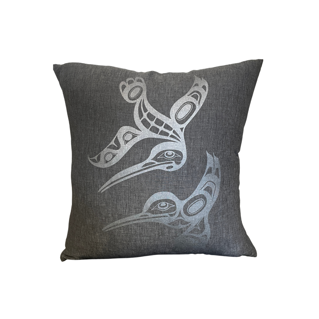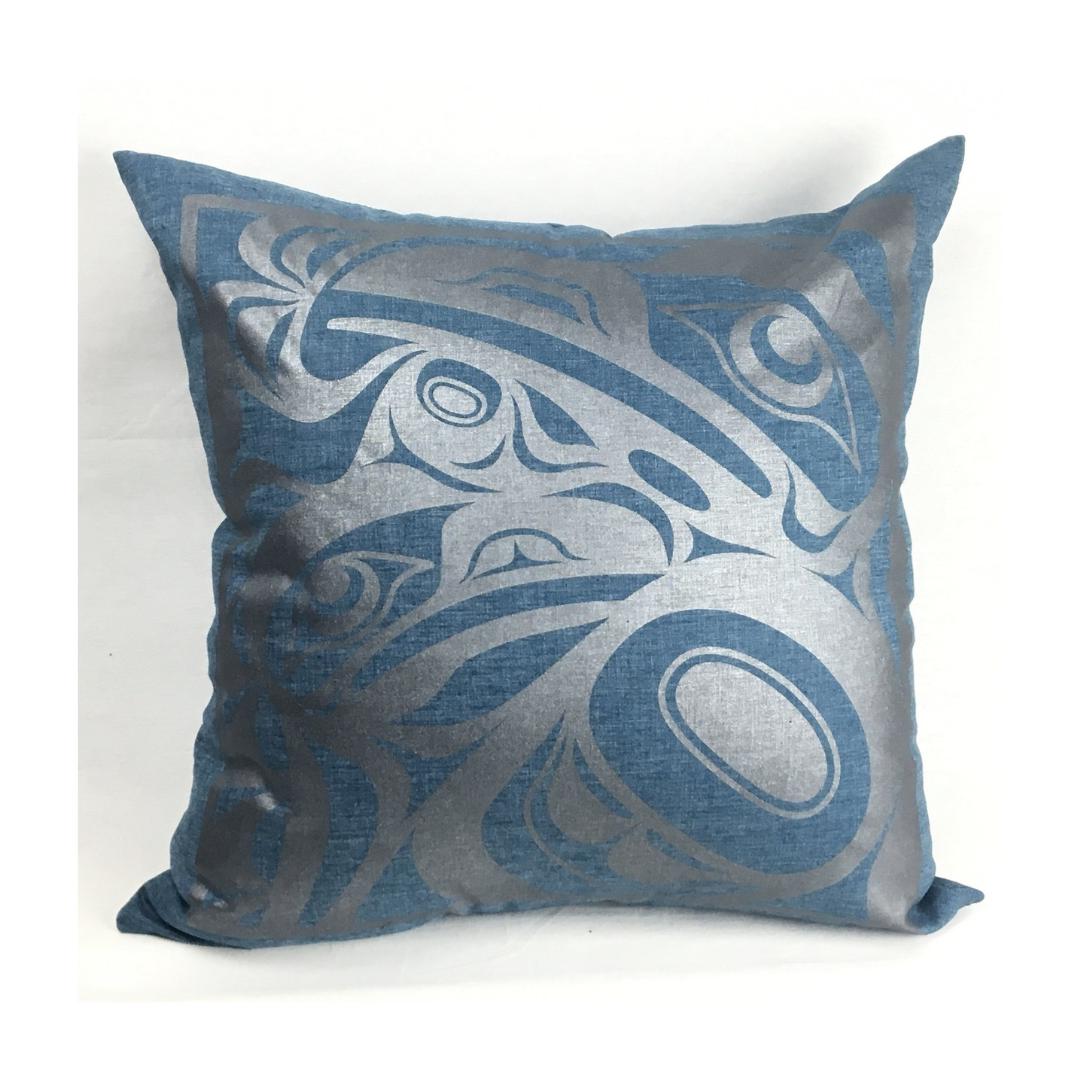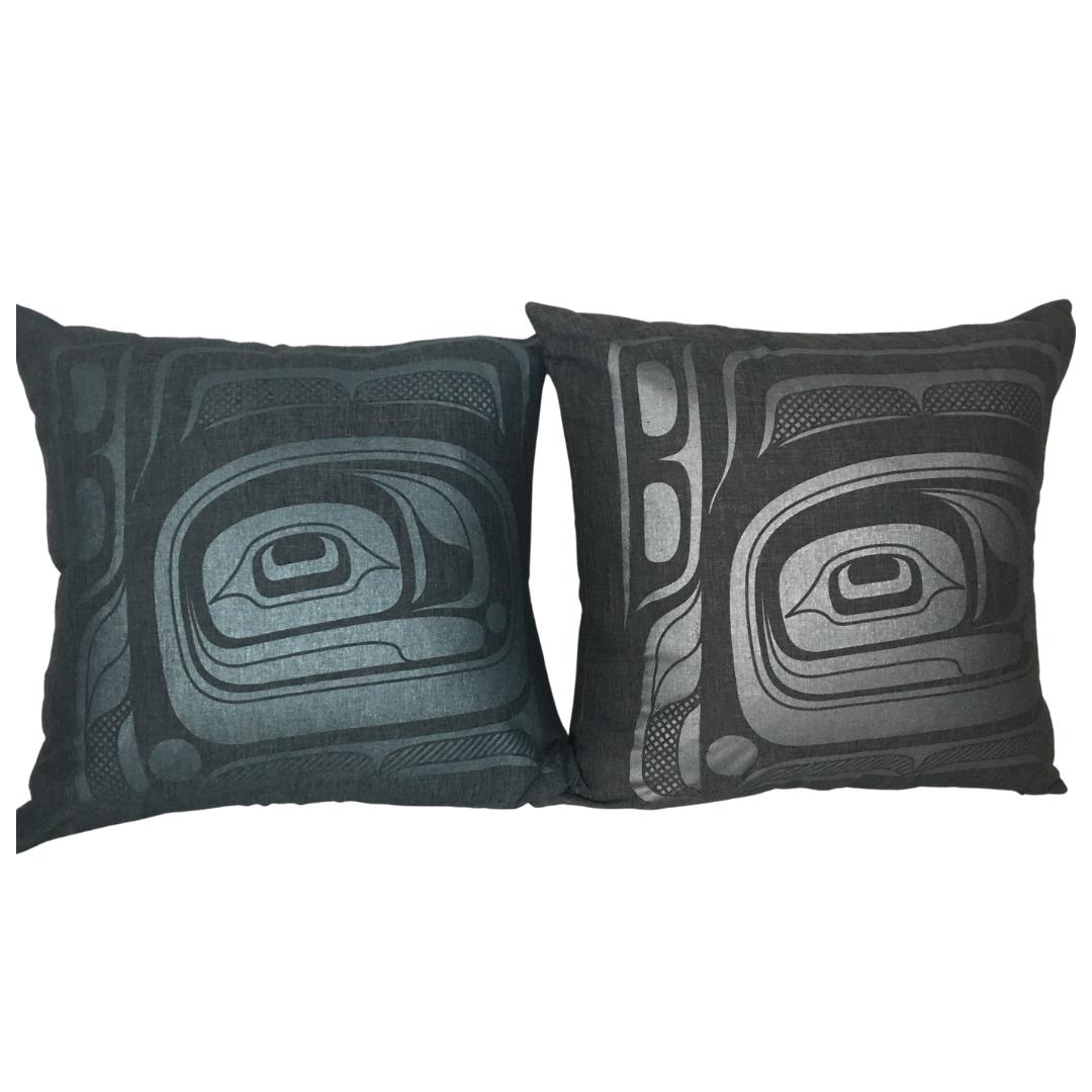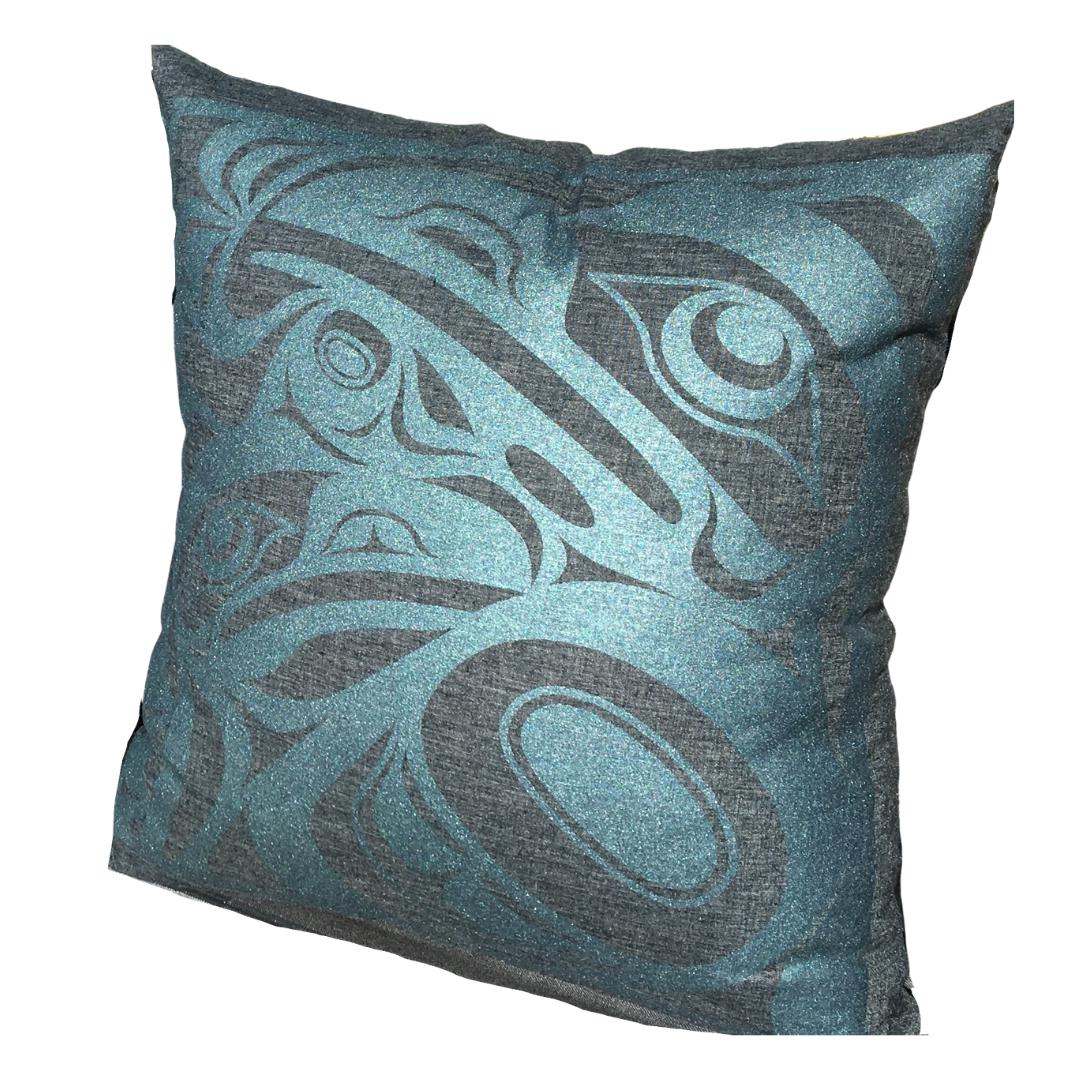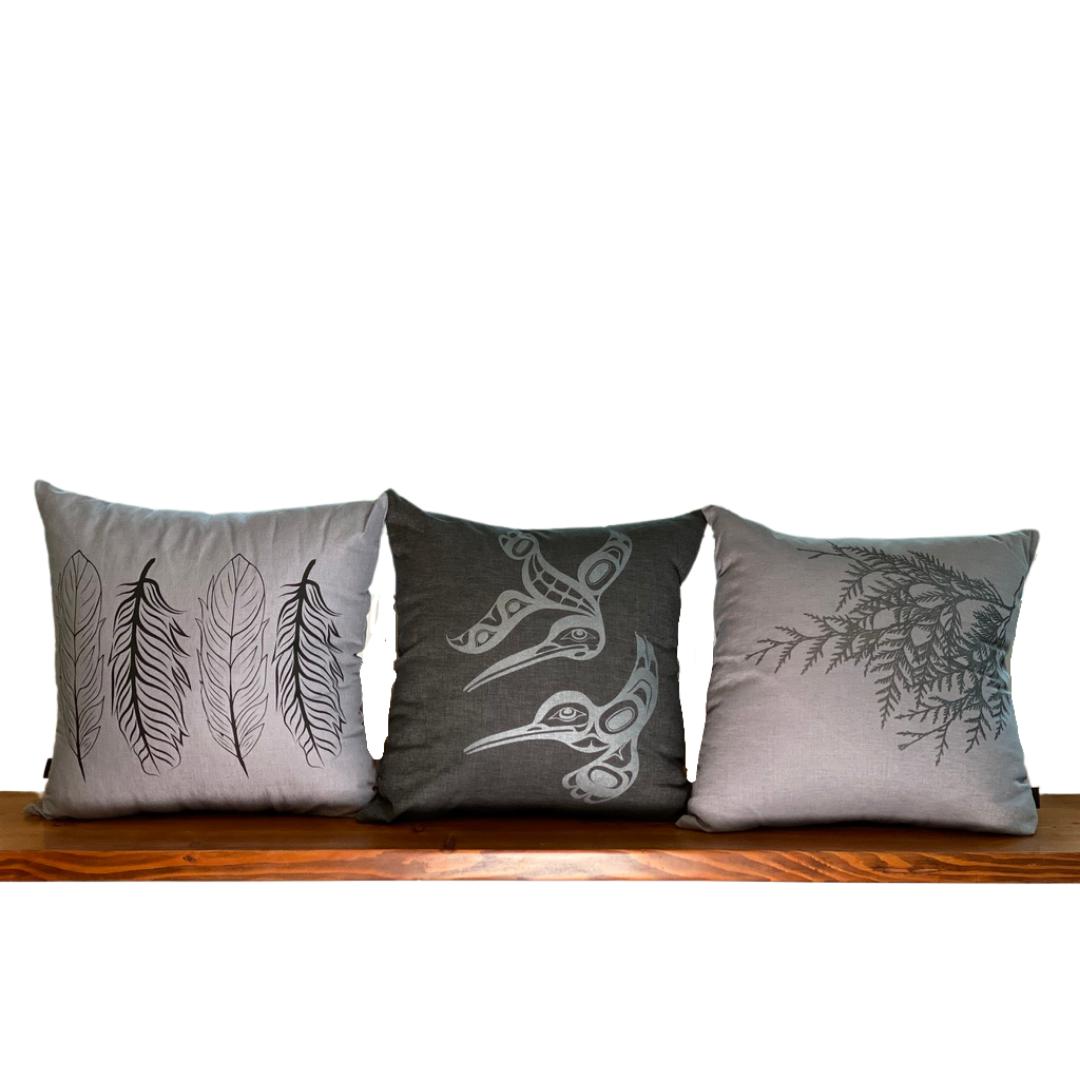Each pillow is sewn locally and printed by us at Kwigwatsi Studio, K'omoks First Nation, Vancouver Island.