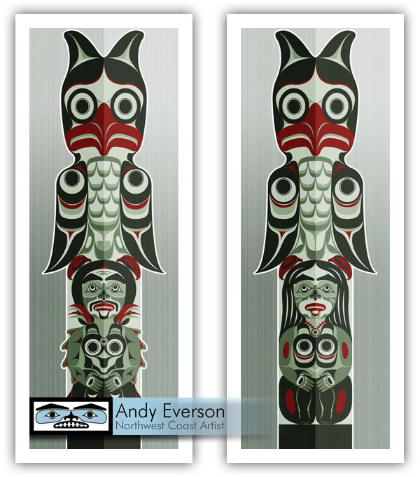 For the lucky amongst us, we grow up surrounded by a loving family. Luckier still are those who have had the privilege to be raised with brothers and sisters. “Brother” and “Sister” are based on the unique design of K’omoks house posts. While the figures under the thunderbirds directly depict our earliest of ancestors, they also portray the strength of siblings holding up our house.