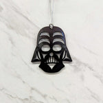 Ornament measures 3" tall not including the string in a Satin Black acrylic.
