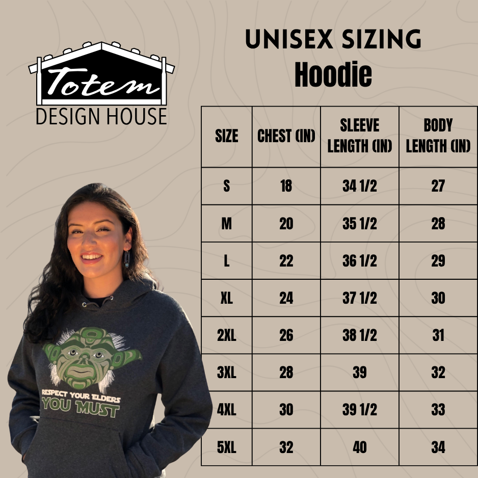 Model wearing unisex hoodie called Resilience by indigenous artist